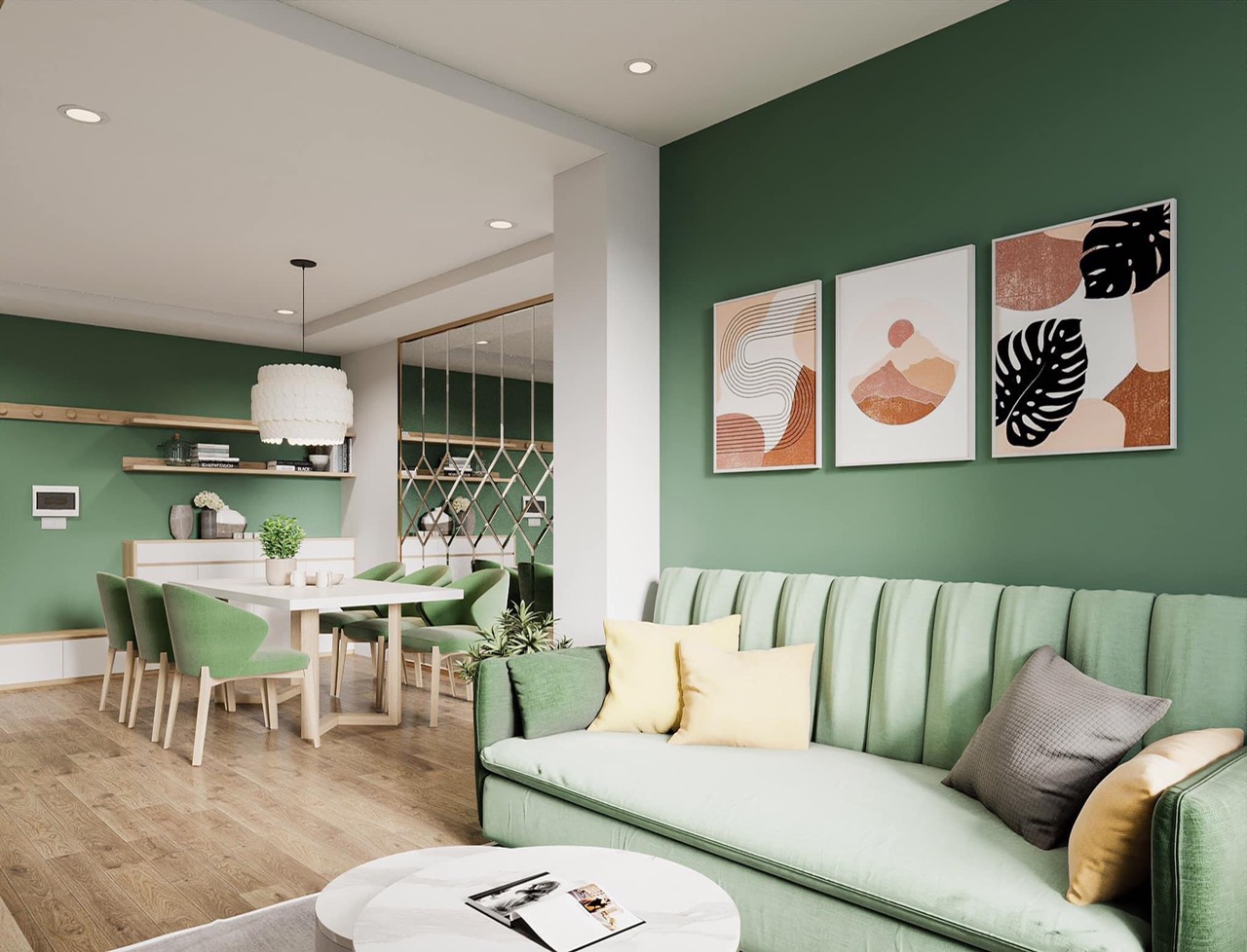 Công trình chung cư em Phương trẻ trung với màu xanh chủ đạo