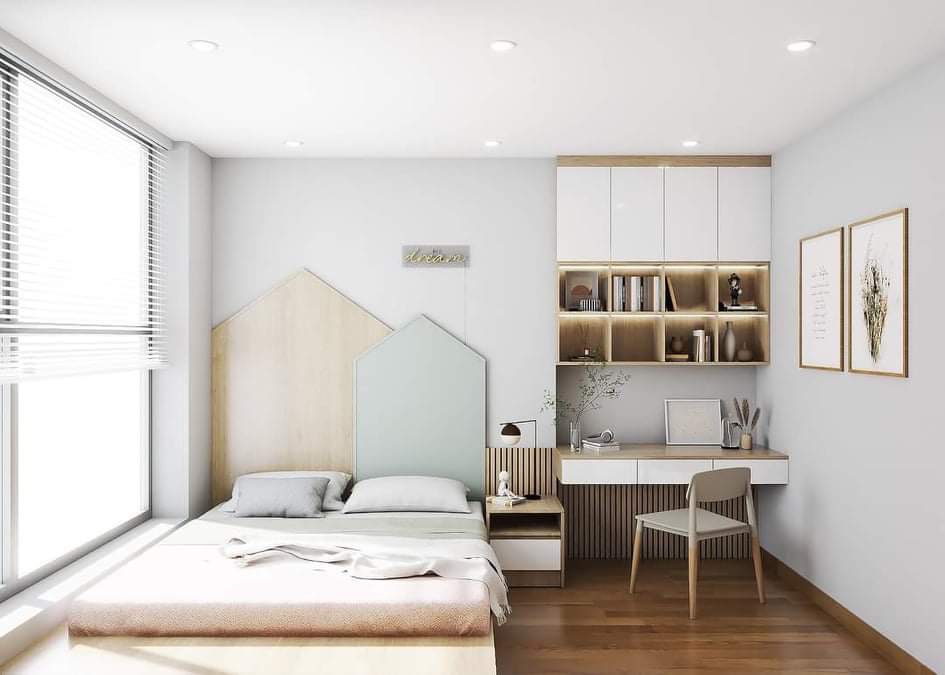 Bức tường sơn màu trắng, ánh sáng tự nhiên kết hợp cùng đồ nội thất gỗ cao cấp mang đến sự bình yên trong không gian phòng ngủ đẹp cho nữ.